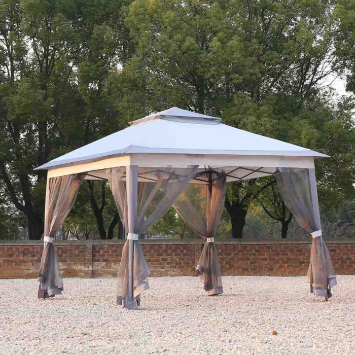 This Outdoor Rainproof Tent With Curtains is made of durable fabric that provides protection from rain and sun, offering a comfortable outdoor gathering space, combining mesh curtains for flexible use with high stability and easy setup