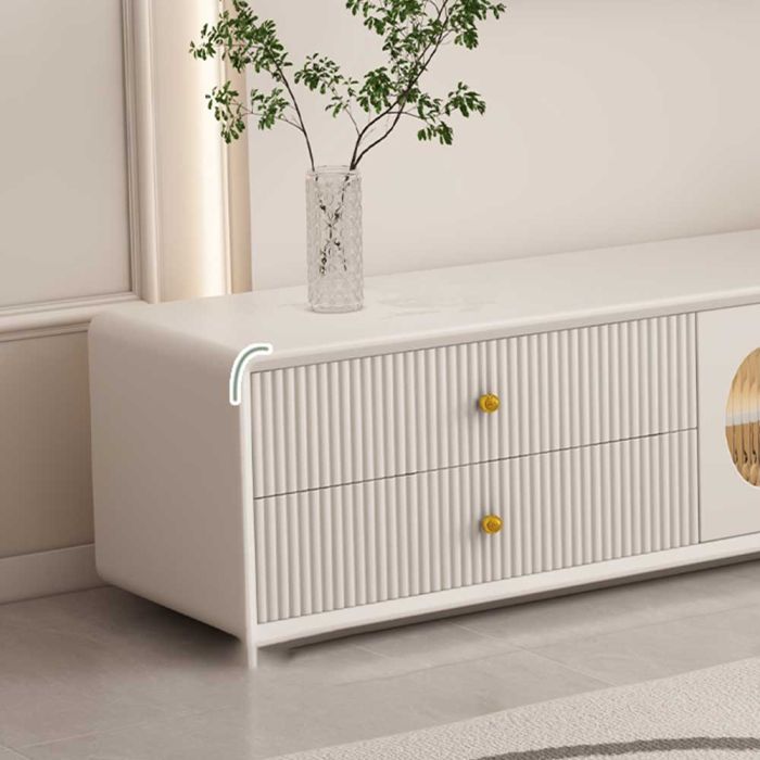 Organize and elevate your living space with a French wooden TV cabinet featuring drawers and transparent doors, crafted from carefully selected materials, offering an elegant look and refined touch, with smart storage solutions that keep everything tidy and visually appealing