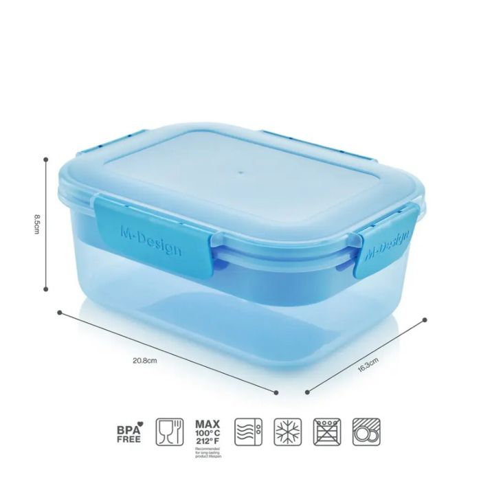 Designed for life on the move, this Fresco lunch box keeps meals looking fresh and packed neatly from the moment you close the lid to the moment you open it. Lock-tight clips and a rubber seal help protect your food on the go, while the removable tray makes it easy to separate snacks and portions without mixing flavors. Built for everyday convenience, it’s made to handle busy routines with practical durability and a clean, modern feel.