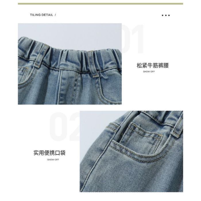 This Front pocket wide-leg jeans for girls made from durable and comfortable fabric, featuring a loose fit that allows easy movement and a modern look, stylish design suitable for daily wear, gentle on the skin and maintains its quality