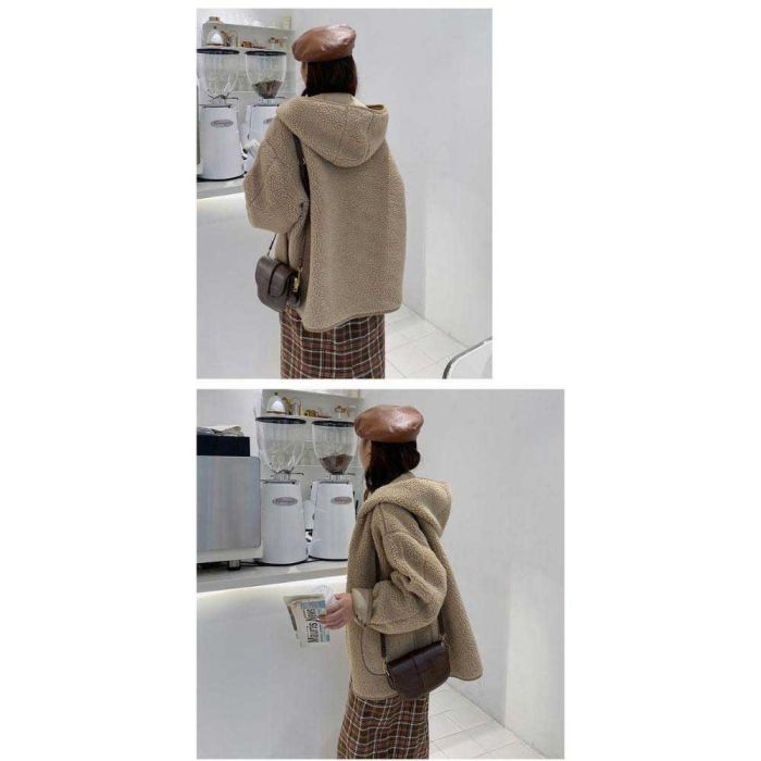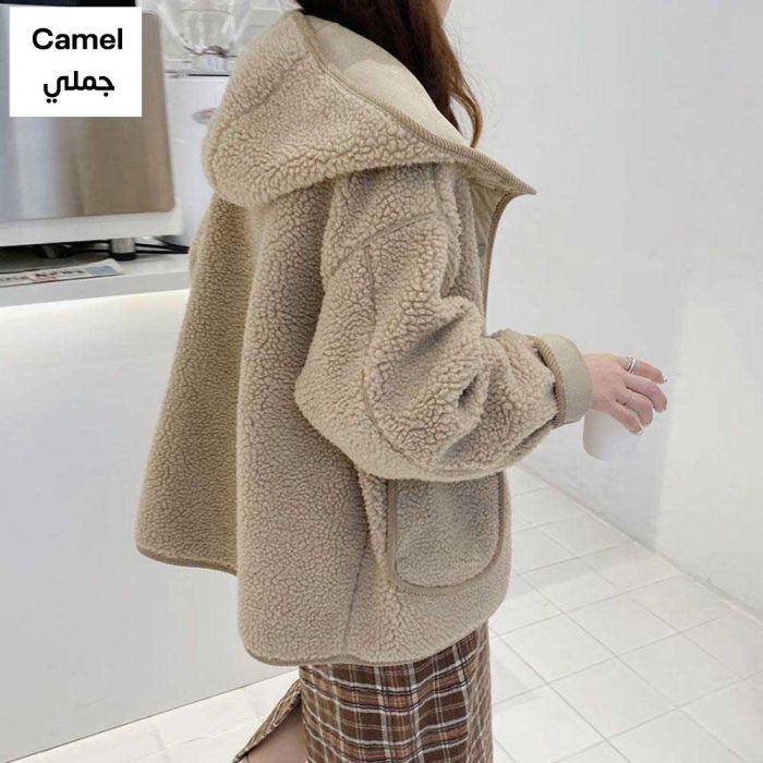 This Fur lined hooded jacket for women made from soft lamb wool, offering luxurious warmth and a comfortable feel, featuring a modern design that enhances your elegance in cold weather and adds a refined look suitable for daily outings with a stylish presence