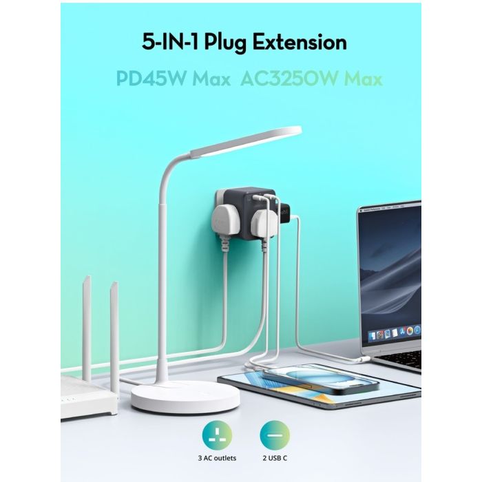 The perfect solution for the office and home. This hub provides 45W charging power via two advanced GaN 5.0 USB-C ports for efficient and low-heat charging of laptops and phones, plus three AC outlets supporting electrical devices up to 3250W. Thanks to iSmart Triple Amperage Protection technology, you can safely power up to five devices simultaneously with optimal current stability, eliminating the clutter of multiple plugs.