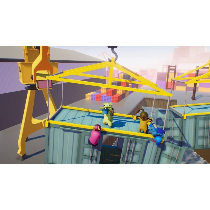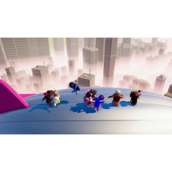 Gang Beasts is a silly multiplayer party game with surly gelatinous characters, brutal slapstick fight sequences, and absurd hazardous environments, set in the mean streets of Beef City.