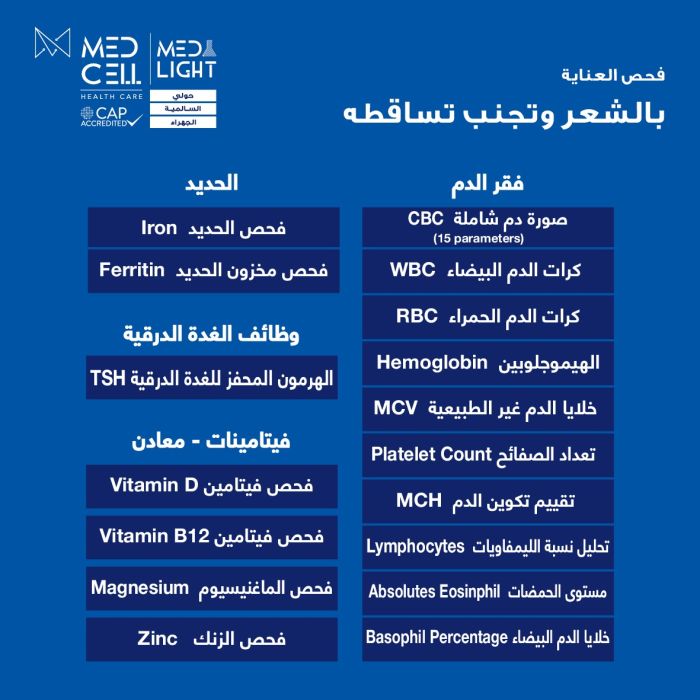 Get Your Sheeel Code and Enjoy a Hair Care and Hair Loss Check-Up at Med Light Lab - To Know Price of the service please contact the Lab