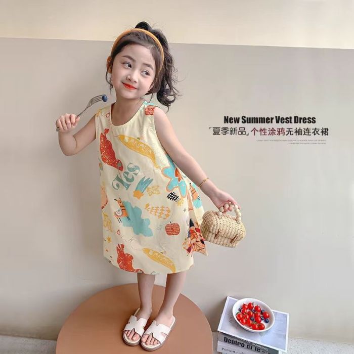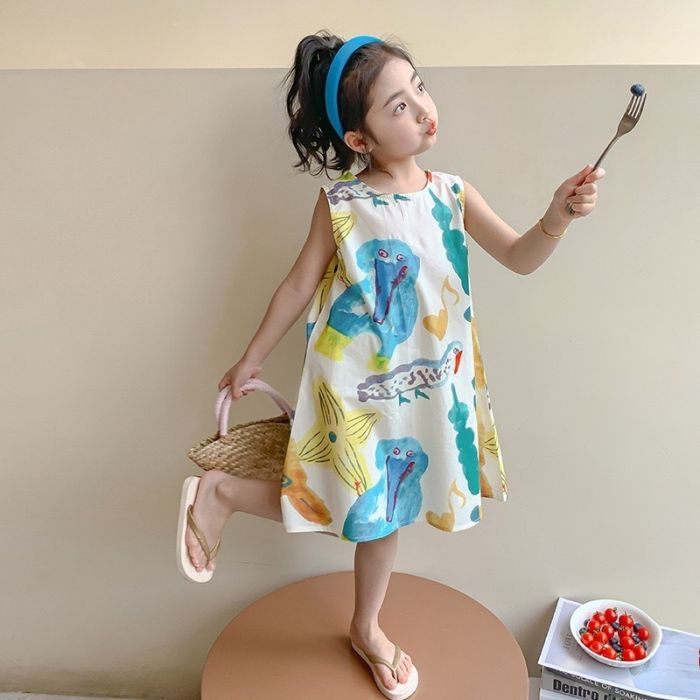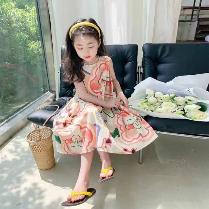 Let Your Girl express her colorful personality with this Girls’ Sleeveless Graffiti Vest Dress! With a fun Korean-style flair and artistic print, this summer favorite is lightweight, playful, and perfect for little trendsetters who love to stand out