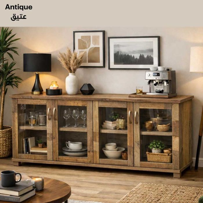 Elevate your dining or living space with the Malaysian Sideboard. Featuring 4 glass doors, it combines elegant display with practical storage, keeping your items organized while showcasing your décor in style.