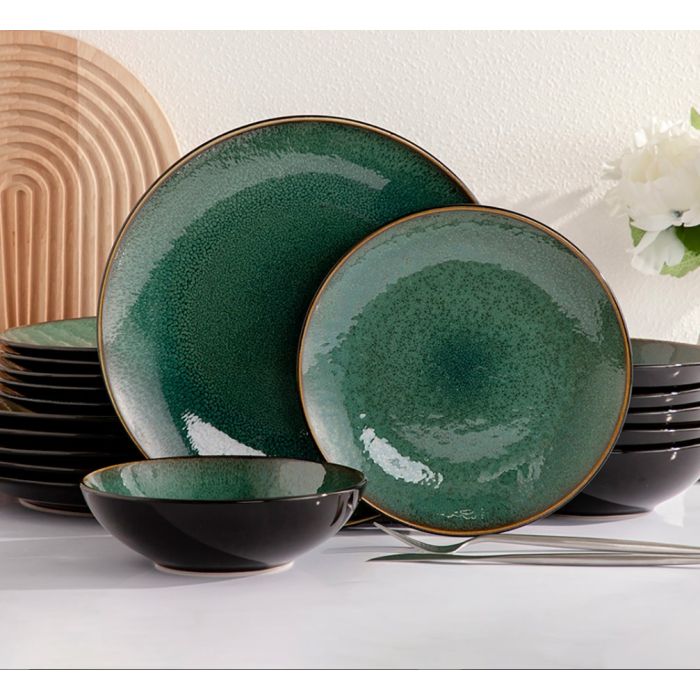 - Green Round Porcelain Dinner 18Pcs Set