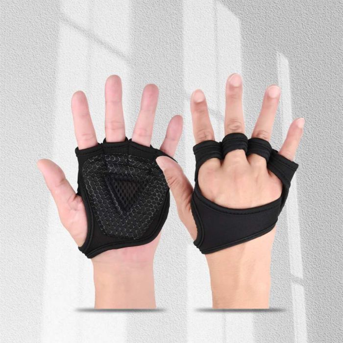 This half-finger fitness training gloves are made from comfortable material that provides better grip during workouts, helping reduce hand slippage, with suitable support offering greater control and stability during daily exercises