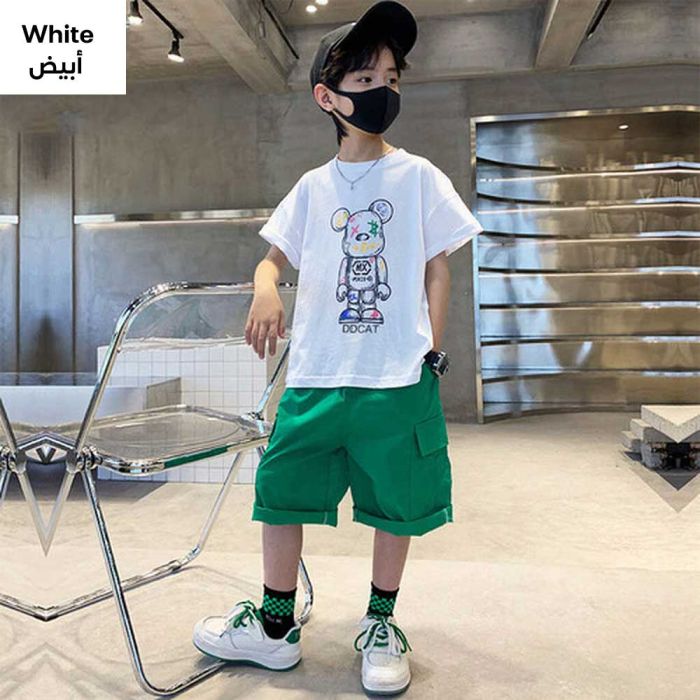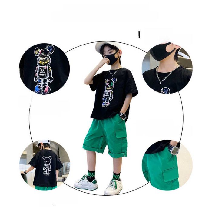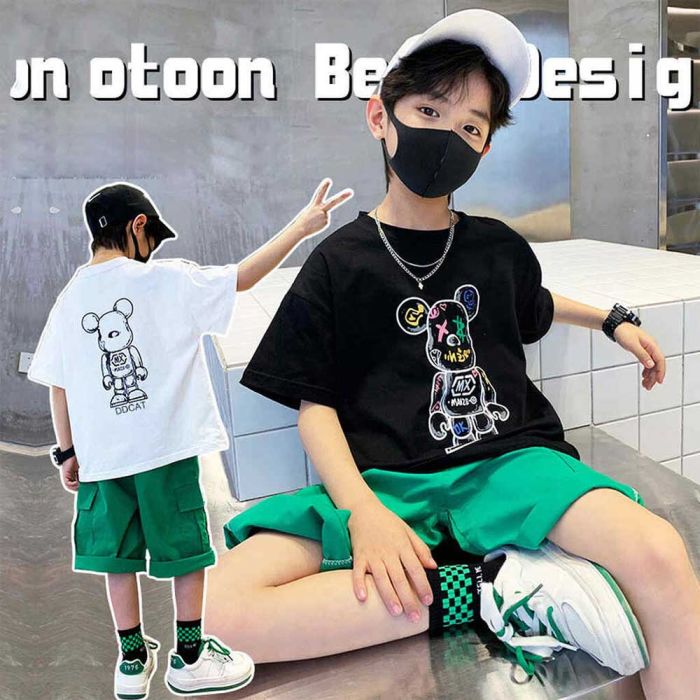This trendy Half-sleeved cartoon T-shirt adds a fun, fashionable touch to your child’s wardrobe. Suitable for boys, this tee features a playful Japanese print and a comfy loose fit that’s perfect for everyday wear. Crafted from soft, breathable fabric, it’s ideal for staying cool during Summer months while keeping your child looking effortlessly stylish