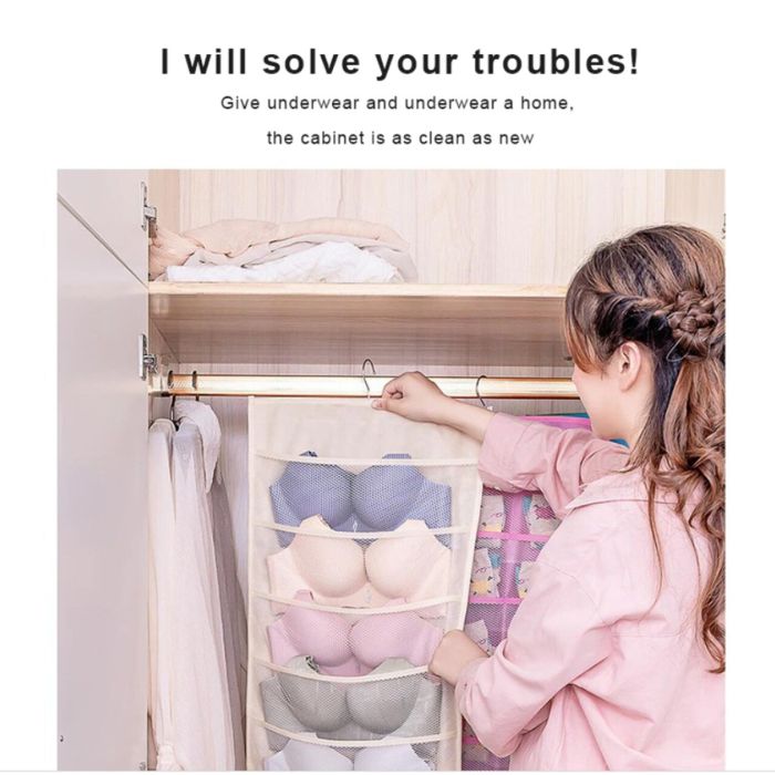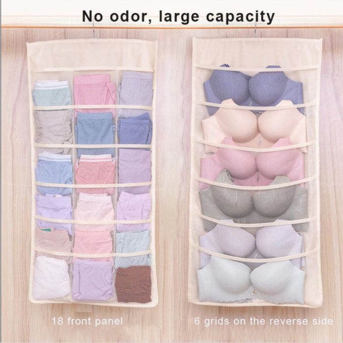 High quality and smart designed underwear and socks hanging holder. Helps you to organize your closet with large capacity hanging bag.