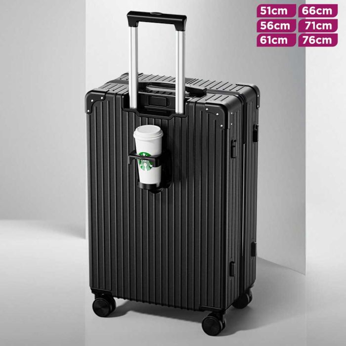 - Hard Shell Travel Suitcase with Cup Holder and Wheels