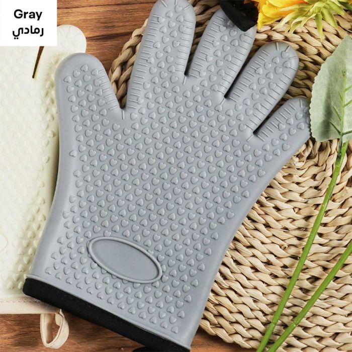 Protect your hands while cooking with these heat-resistant silicone kitchen gloves, designed for a secure grip and protection against burns. These five-finger silicone kitchen gloves offer excellent protection against high temperatures, making them ideal for handling hot pots, baking pans, and grilling tools. Made from food-safe silicone, they provide a non-slip grip and flexibility for precise control. The two-finger design allows for greater control while ensuring safety, making them ideal for tasks that require precision and heat resistance in the kitchen.