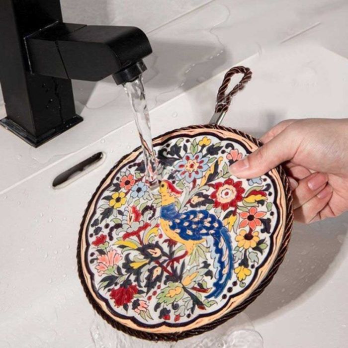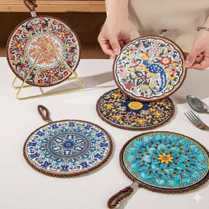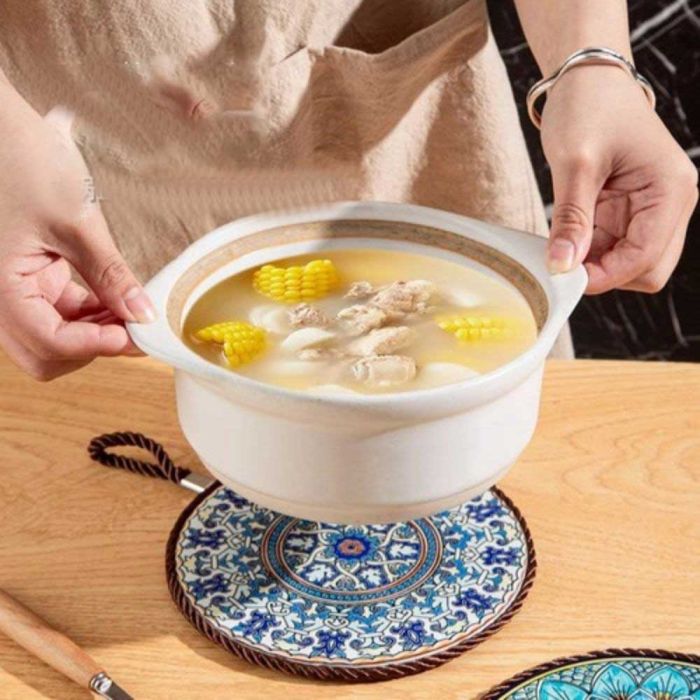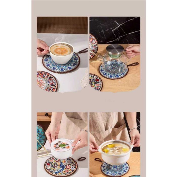 This Heat Resistant Ceramic Surface Cookware Mat made with a smooth ceramic top and an insulated cork base, protects tables from heat and burns, easy to clean, and provides elegant stability for cookware during serving