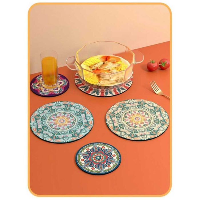 - Heat Resistant Mandala Style Table Mat Set – 6 Pieces