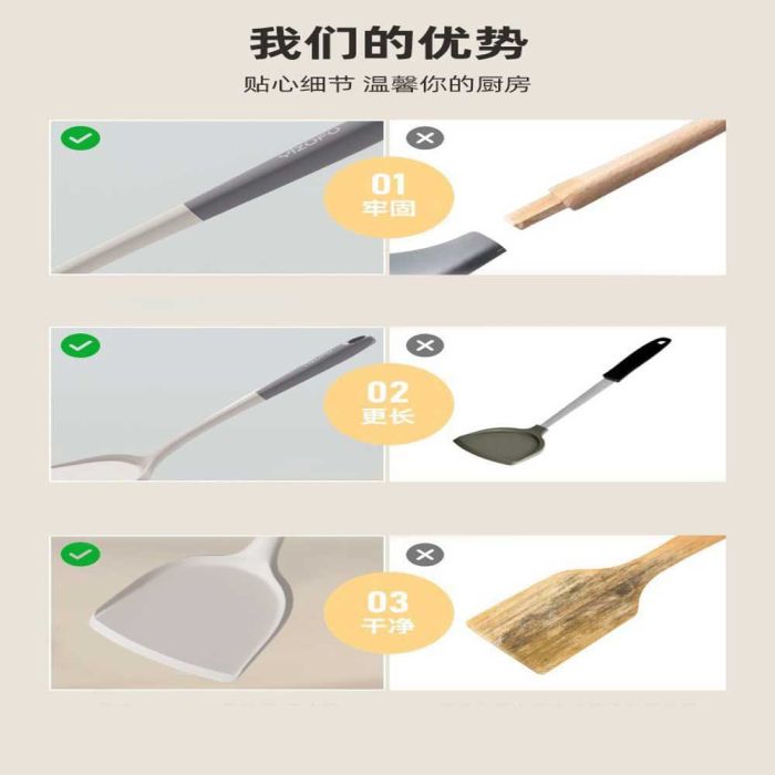 - Heat Resistant Silicone Kitchen Utensil Set - 3 Pcs