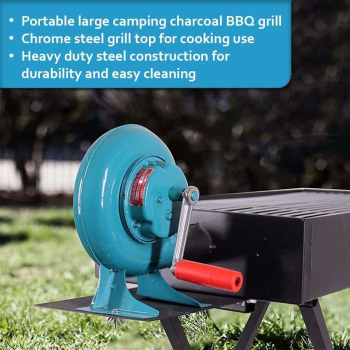 - Manual air blower for quick charcoal lighting
