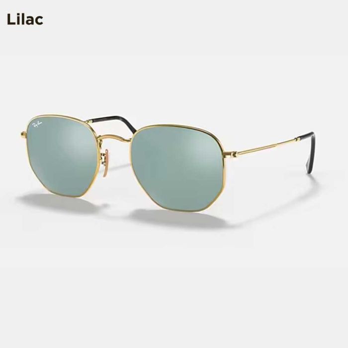- Hexagonal Flat Lenses Sunglasses with Gold Frame 54cm by Ray-Ban -Lilac