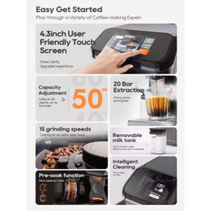 - Built-in Grinder, Milk Frothing System, Intuitive Touch Display