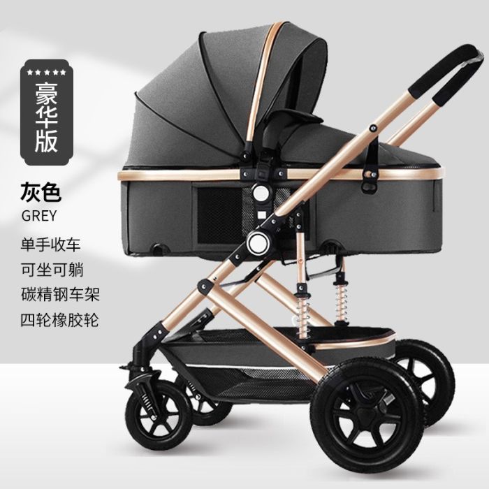 - High-View Multifunctional Baby Stroller with Rubber Wheels - Grey