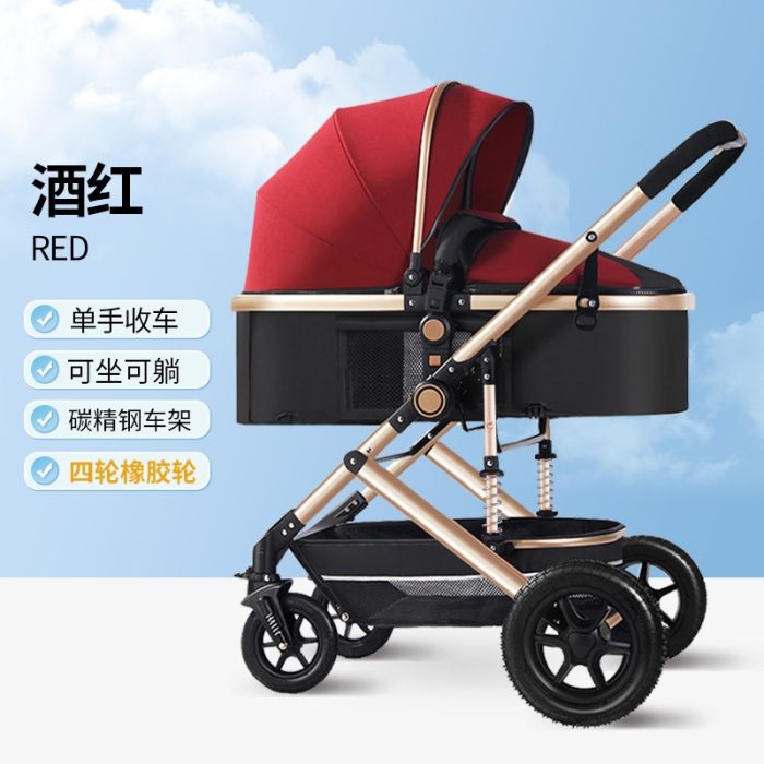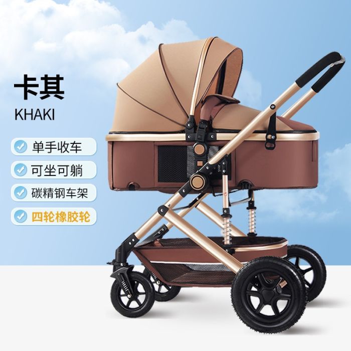 High-View Multifunctional Baby Stroller with Rubber Wheels