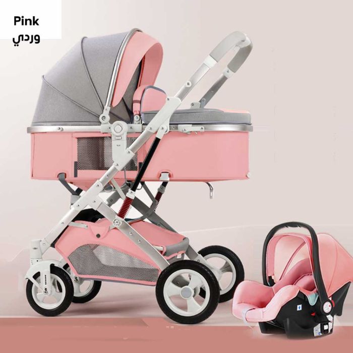 - High-View Newborn Reclining Foldable and Shock-Absorbing Stroller 2 in 1 with Basket - Pink