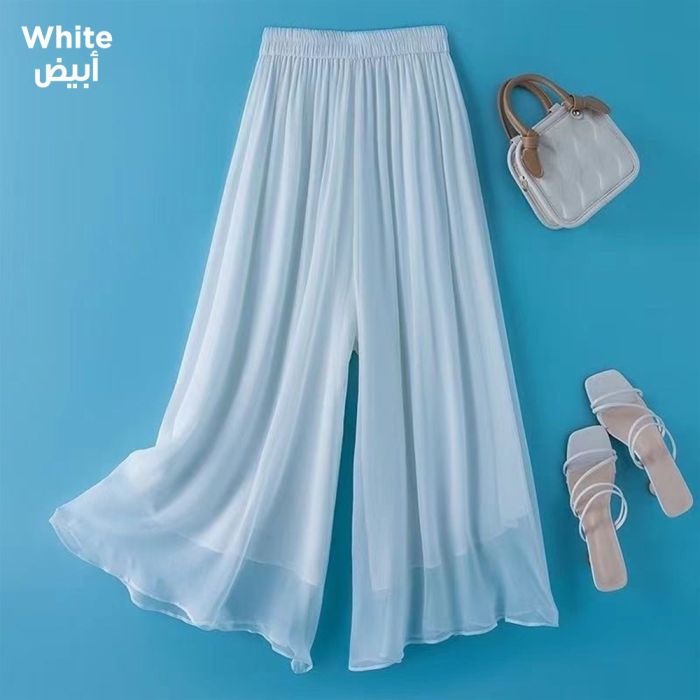 Stand out in style and comfort with these casual trousers. Designed with a wide-leg silhouette and a high waist for a secure and streamlined look, their soft fabric makes them perfect for everyday wear. The simple design allows for easy pairing with crop tops, loose blouses, or even light jackets. Suitable for work, casual outings, or smart casual looks.Today’s Deal is High-Waist Loose Chiffon Wide Leg Trousers For Women