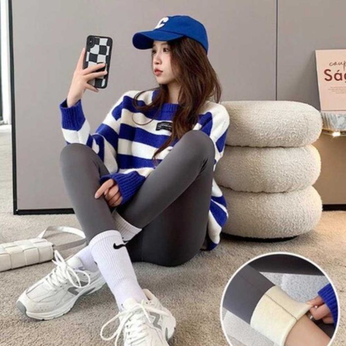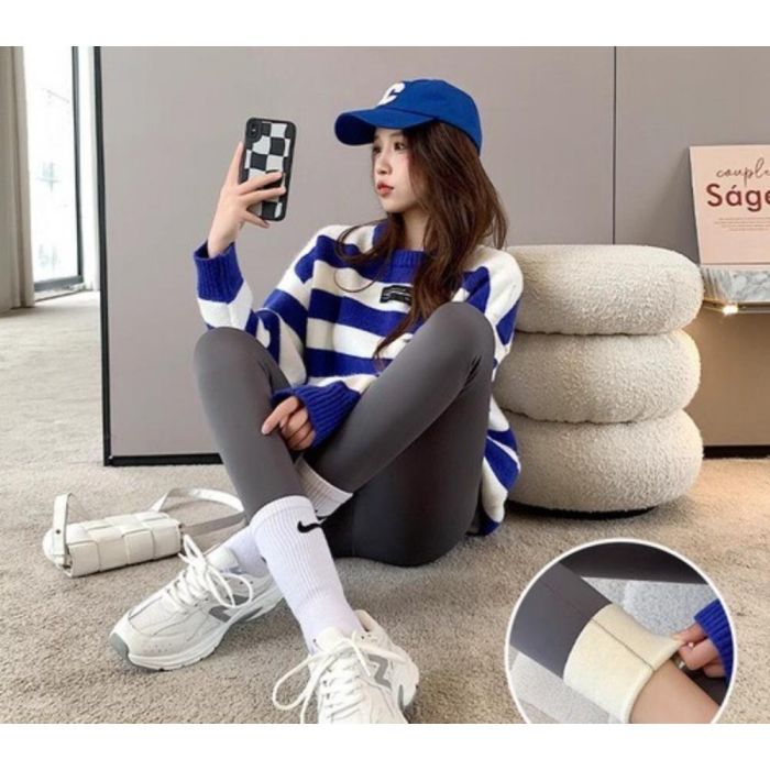 This High-waist padded leggings for women made from a soft fabric that provides cozy warmth and balanced support, designed to shape the waist and enhance the silhouette with a smooth fit, suitable for daily and outdoor wear in cold weather