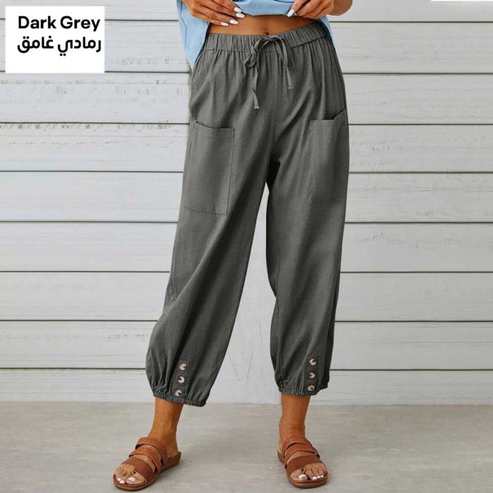 - High-Waisted Cotton Linen Wide Pants for Women