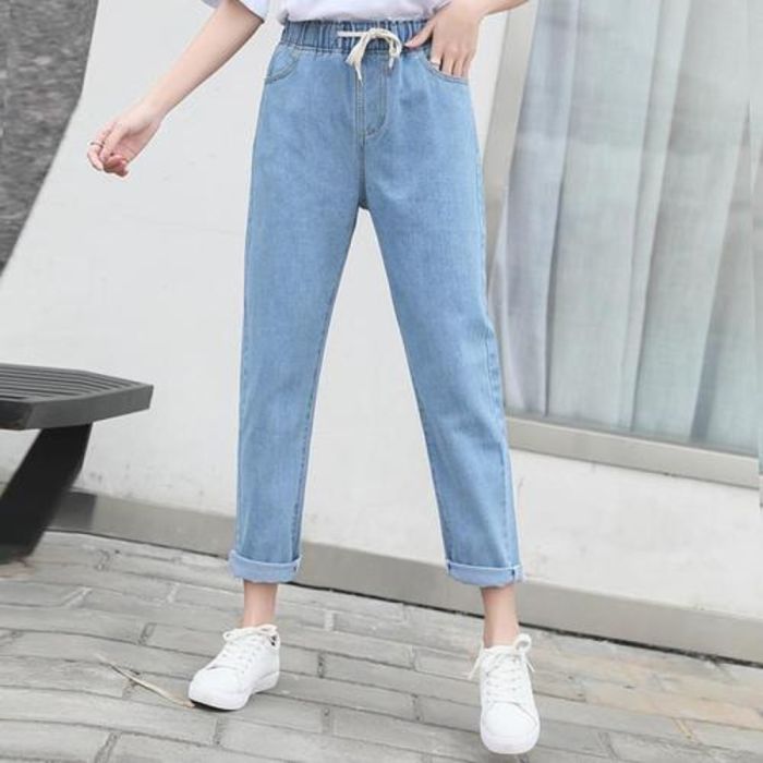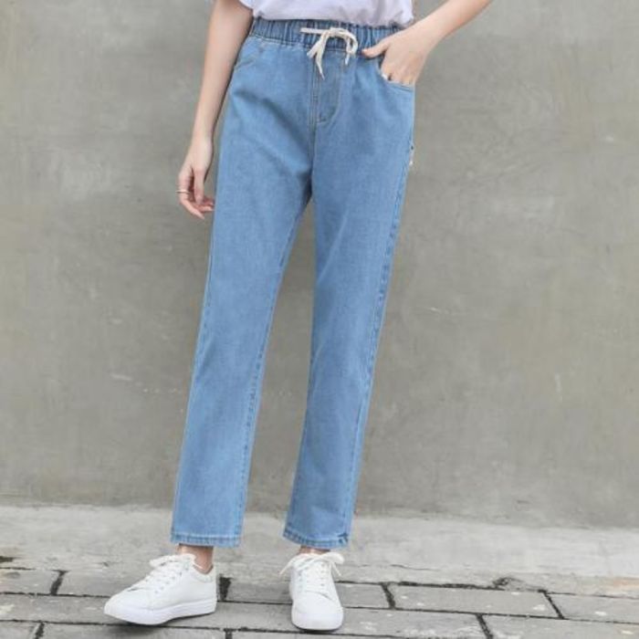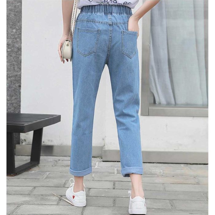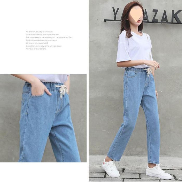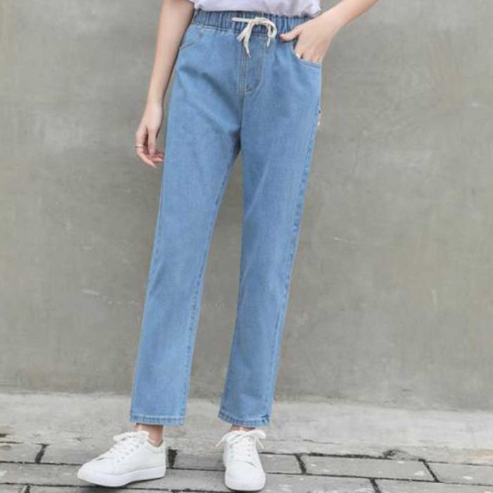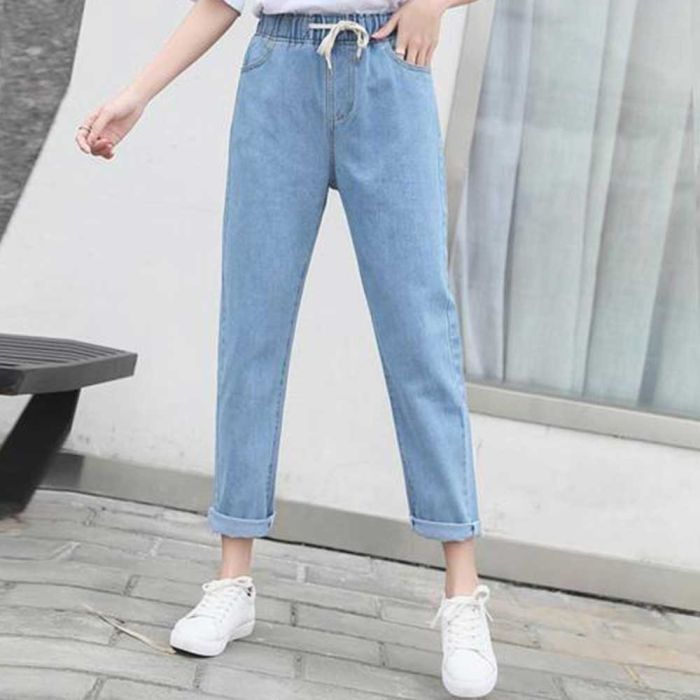 This Women's High-waisted Straight-leg Jeans are Made of Comfortable and Stretchy Denim. They Feature a Loose Fit with a High Elastic Waistband for Figure-hugging Comfort. Secure and Metal-free, They Provide All-day Comfort and Freedom of Movement, Maintaining a Modern and Attractive Look. a Unique Piece That Suits All Times.