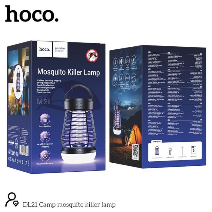 Enjoy peaceful, insect-free nights with the Hoco DL21 mosquito lamp. It combines a modern design with safe technology to eliminate mosquitoes using ultraviolet light and electrocution. It can be used indoors or on the go, thanks to its rechargeable battery, without any harmful odors or chemicals.