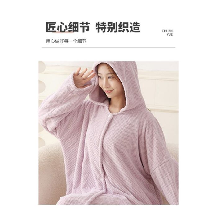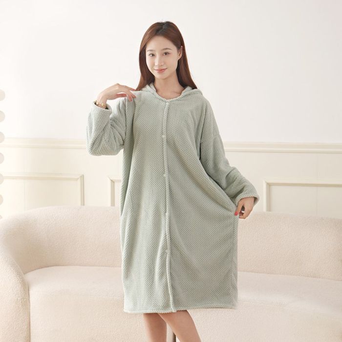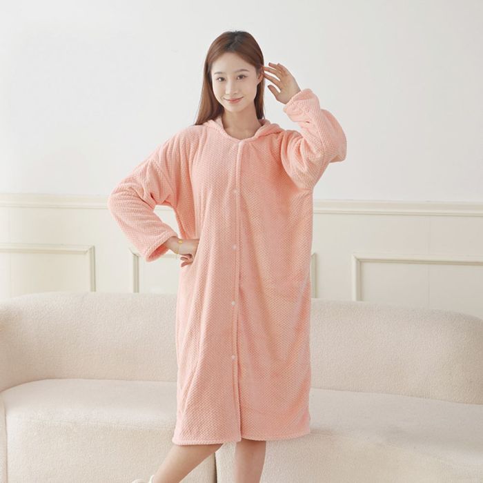 This Hooded Microfiber Bathrobe Long Sleeves made of soft high-absorbency microfiber, dries the body quickly and provides comfortable warmth, loose design suitable for home use in cooler seasons