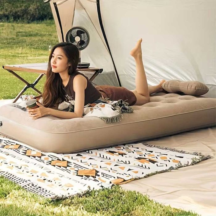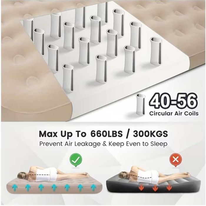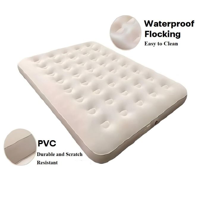 This Airbed is designed for comfort and convenience. With its soft flocked velvet surface, it provides optimal support for the spine, offering cozy, restful and cloudy sleep experience. Whether for camping or welcoming guests