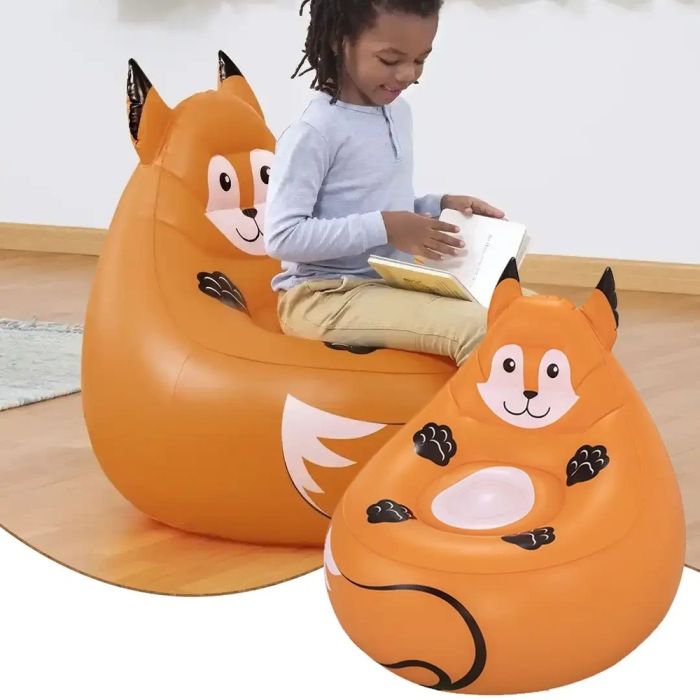 Make playtime more fun for your children with this inflatable chair! With its cute and cheerful animal design, this inflatable chair is perfect for your child's bedroom or the garden. Quick inflation valves make it ready in minutes, it's easy to move, and it supports up to 70 kg, ensuring your children's comfort while playing and relaxing.