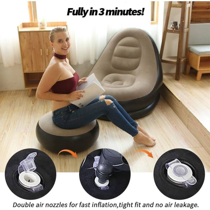Relax anywhere with the Inflatable Lounge Chair and Air Couch Footrest — the ultimate lazy-day essential. Perfect for gaming, reading, watching movies, or enjoying the outdoors. Lightweight, comfy, and easy to set up wherever you go.