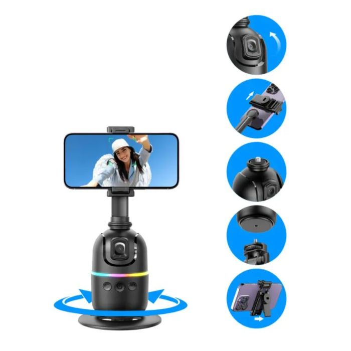 Transform your phone into a professional photography tool with the smart phone stand, featuring face tracking, 360° Rotation to capture moments from every angle effortlessly. With a smart sensor and gesture recognition technology, enjoy complete control without the need for additional apps. Its rechargeable battery and lightweight design ensure a comfortable and perfect shooting experience, ideal for live streaming, meetings, and personal photography. With flexible support for portrait and landscape shooting, making it the ultimate companion for all occasions