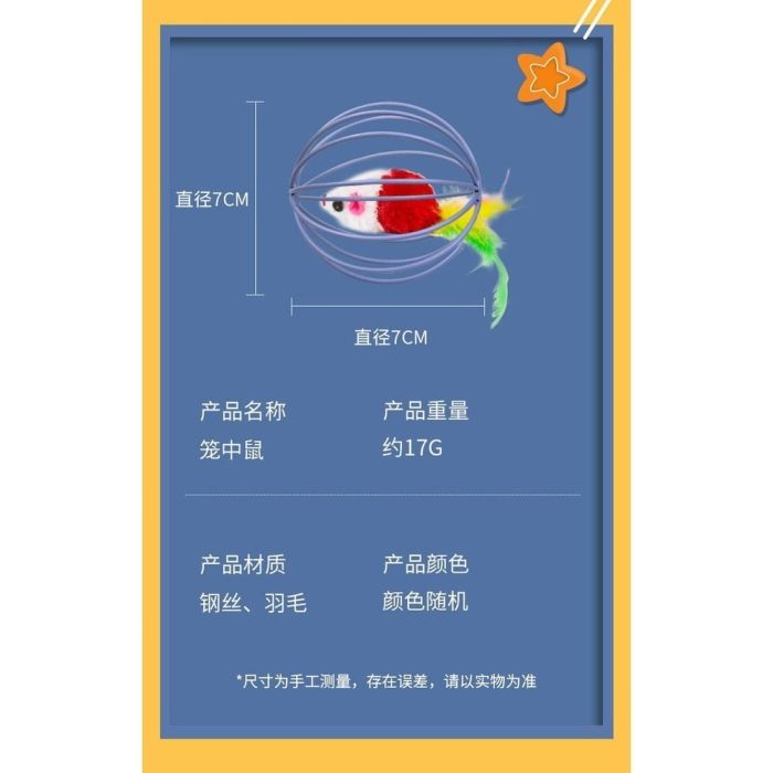 This A Fun Mouse Inside an Interactive Cage for Cats, Made of Safe Plastic Materials and Lightweight Feathers. It Features a Small Mouse Inside a Cage Design That Stimulates the Cat's Hunting Instinct and Encourages Interactive Play.