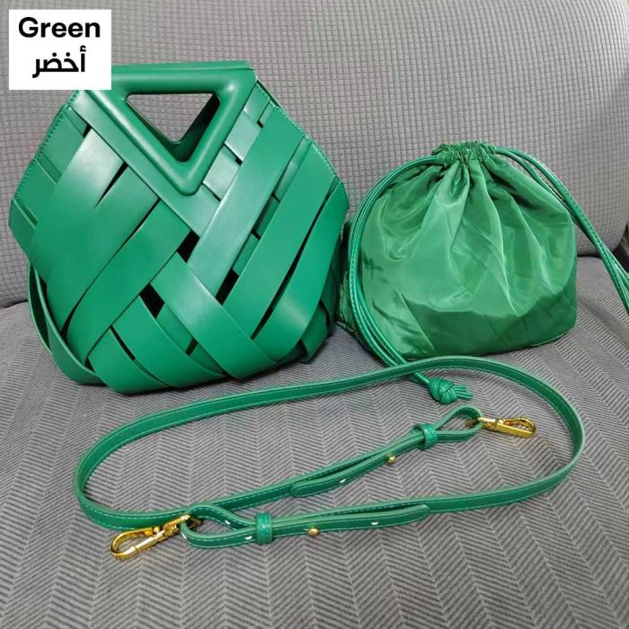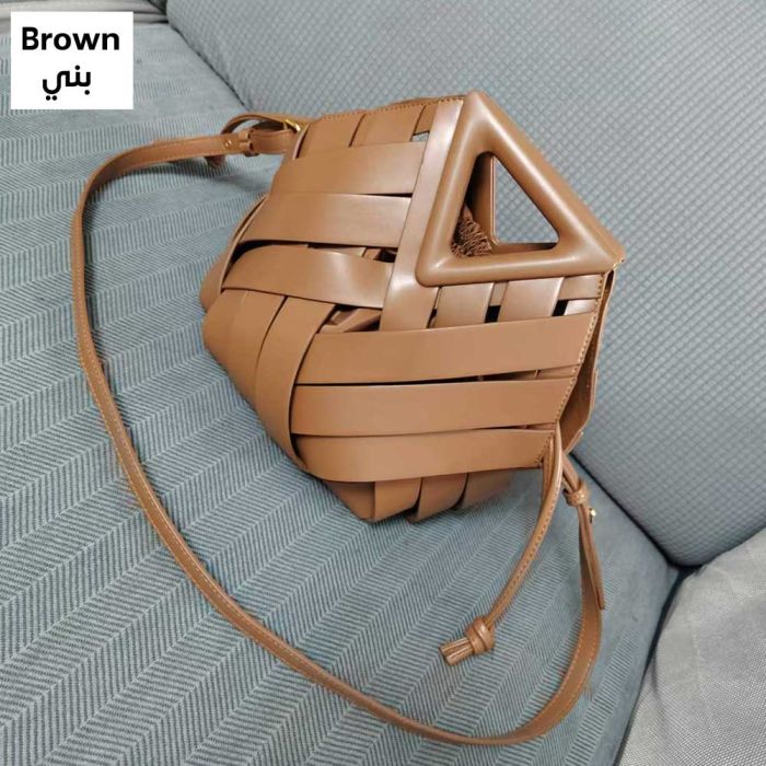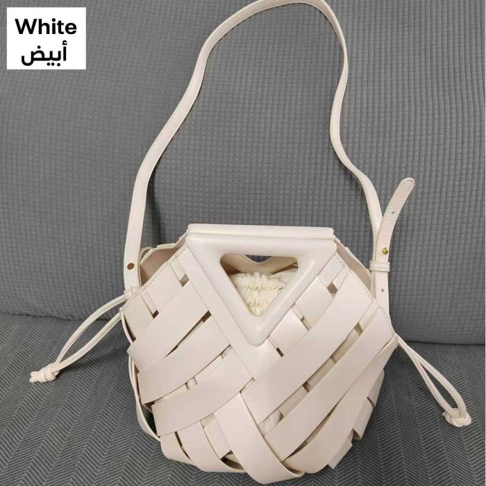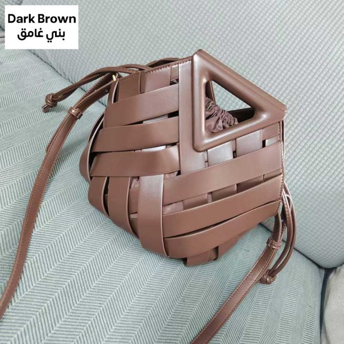 A modern, high-quality handbag known as the "Basket Girl" features a specialized design and a unique, eye-catching inverted triangle shape, setting it apart from traditional handbags. This global model offers a fresh, modern look for women looking for a distinctive piece with a high fashion appeal.Today's Deal is Inverted Triangle Tote Bag 25 x 21 x 25 cm