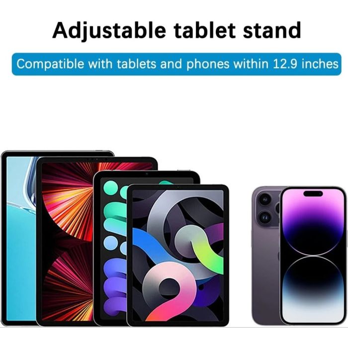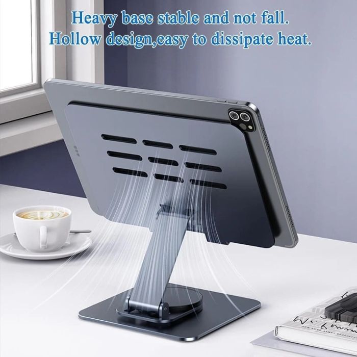 A versatile and ergonomic stand designed to support laptops and tablets, enhancing comfort and productivity during use.