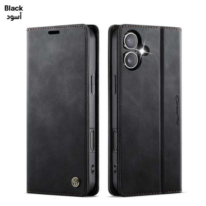 - iPhone Flip Retro Slim Cow Leather Cover with RIFD Protection - Black - iPhone 17 Pro Max