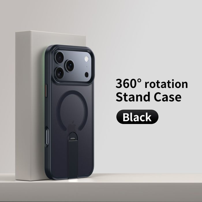 - iPhone Protective Case with Hidden Bracket and Magnetic Wireless Charging - Black - iPhone 16 Pro Max