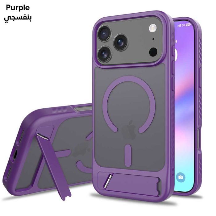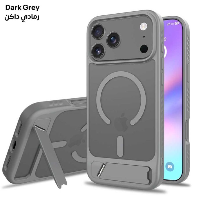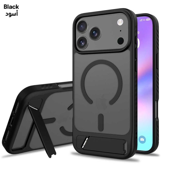 - iPhone Protective Case with Hidden Kick Standand Magnetic Wireless Charging - Black - iPhone 17