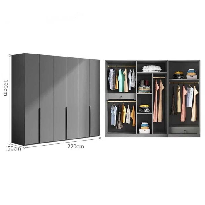 IRONRIDGE HDF Wood Wardrobe 6 Doors 220×50×196 cm