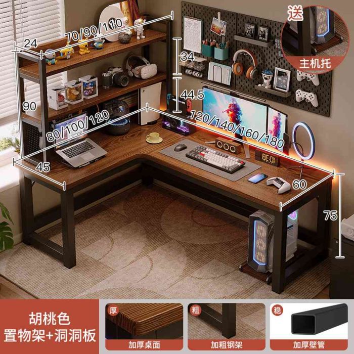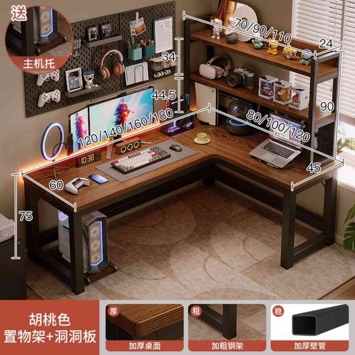 - IRONRIDGE MDF Office Table L-Shape with Metal Frame and Storage Rack and Pegboard