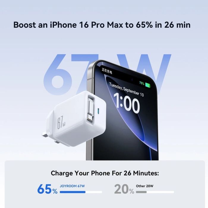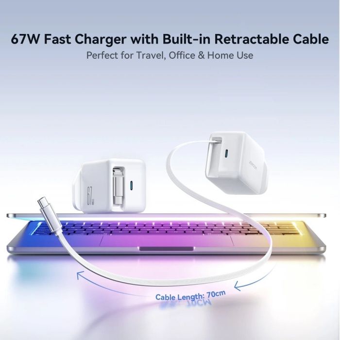 - Joyroom 67W Fast Wall Charger with Type-C Port and Retractable Type-C Cable