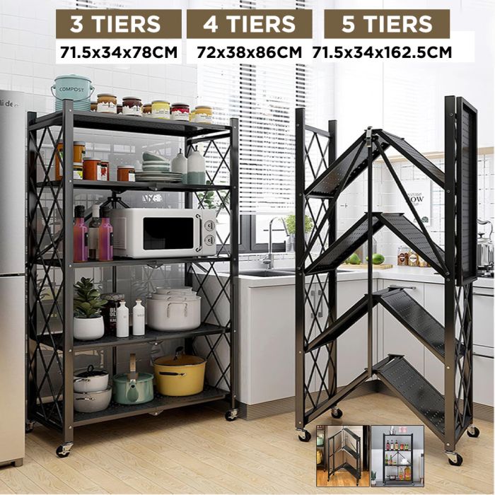 - Foldable Multi-Tiers Metal Storage Rack with Wheels (3 or 4 or 5 Tiers )