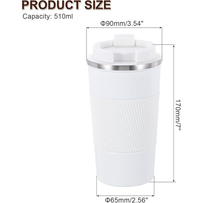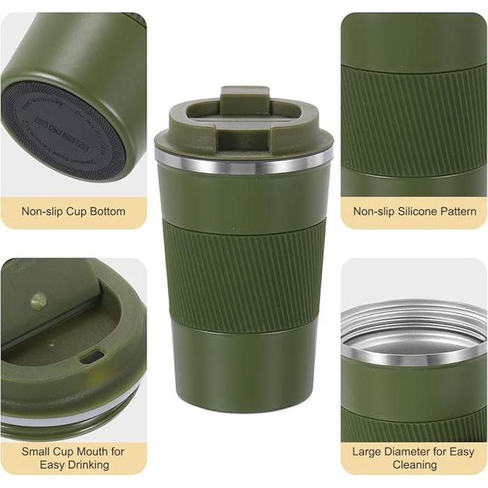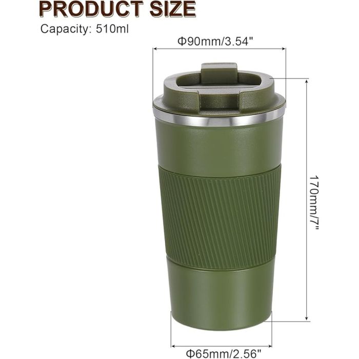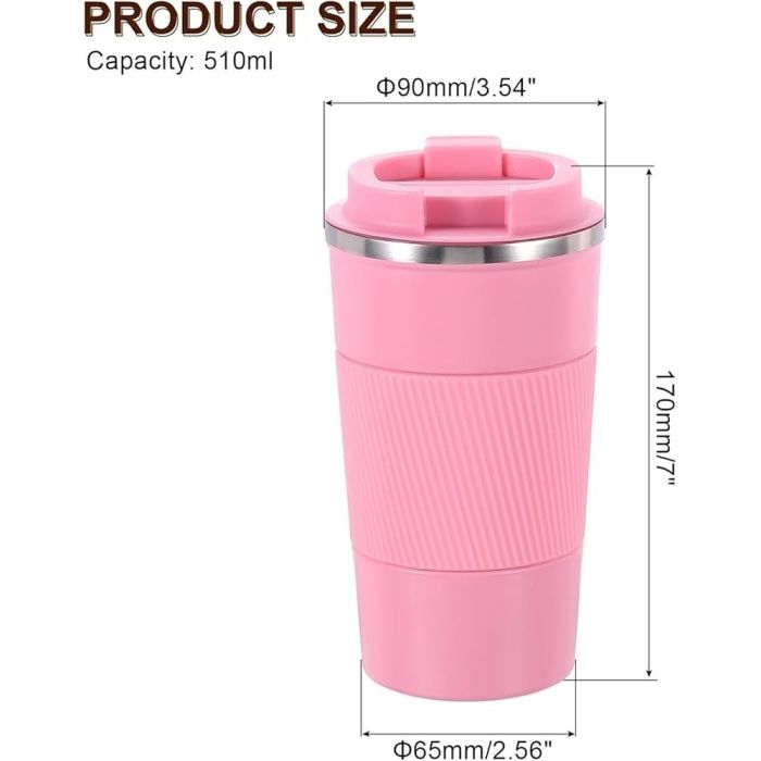 Keep your drinks hot and cold for longer with this 510ml insulated stainless steel mug. Featuring a smooth, easy-to-clean surface, this mug offers excellent resistance to rust, corrosion, and heat, ensuring long-lasting use. The non-slip silicone lid and spout make it easy to hold and prevent spills, while the flip-up spout allows for one-handed sipping. Ideal for travel, work, camping, or road trips, it can also be used for any hot beverage like coffee, milk, or water.