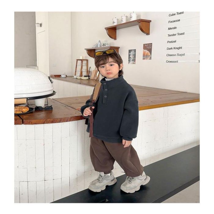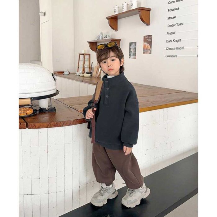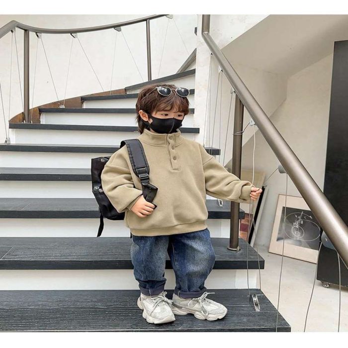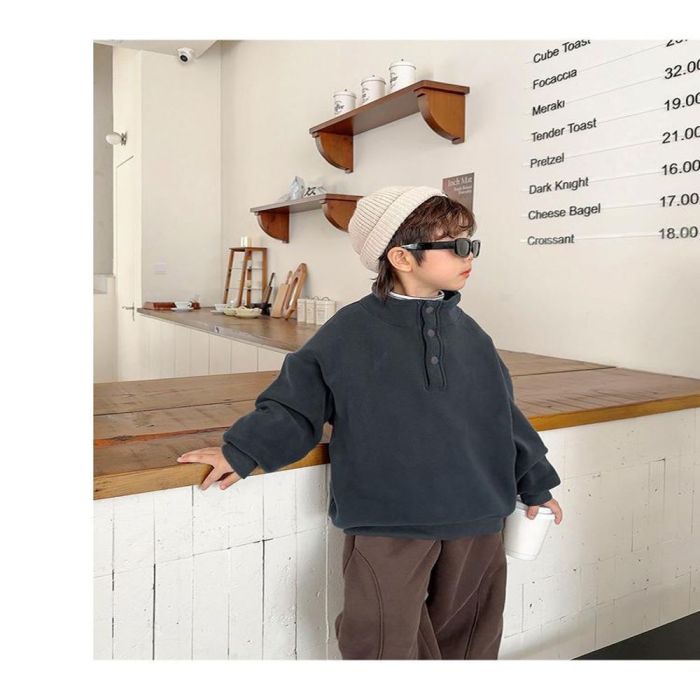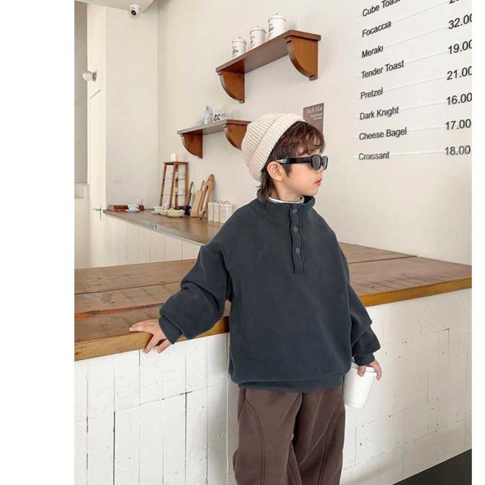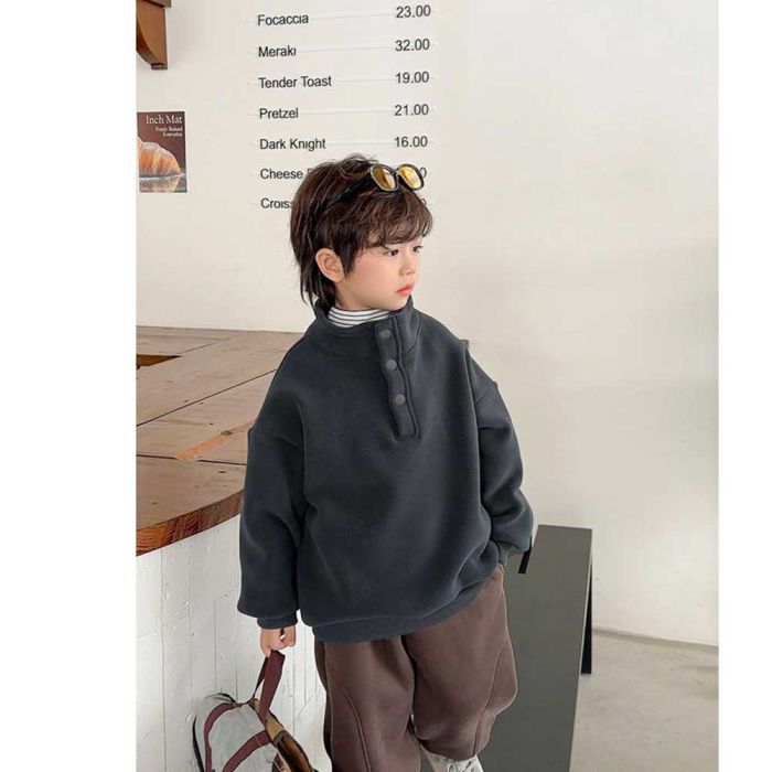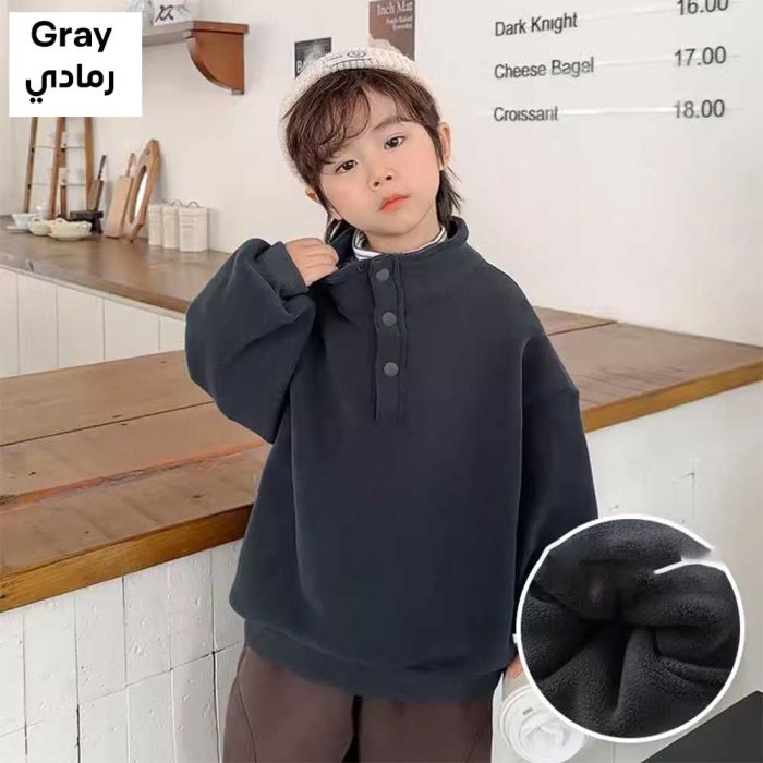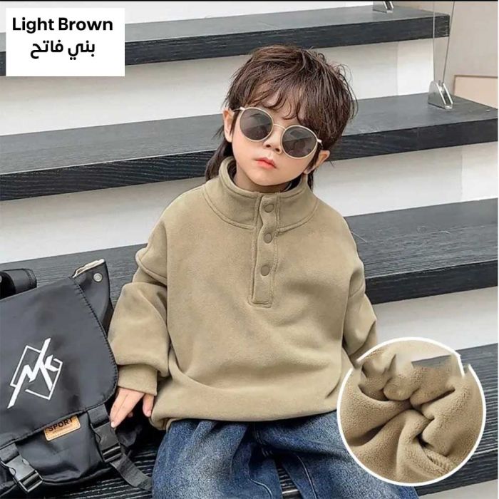 This Kids Long Collar Plush Sweatshirt made from soft warm material, elegant long collar design, comfortable fit, suitable for cold weather with an attractive look