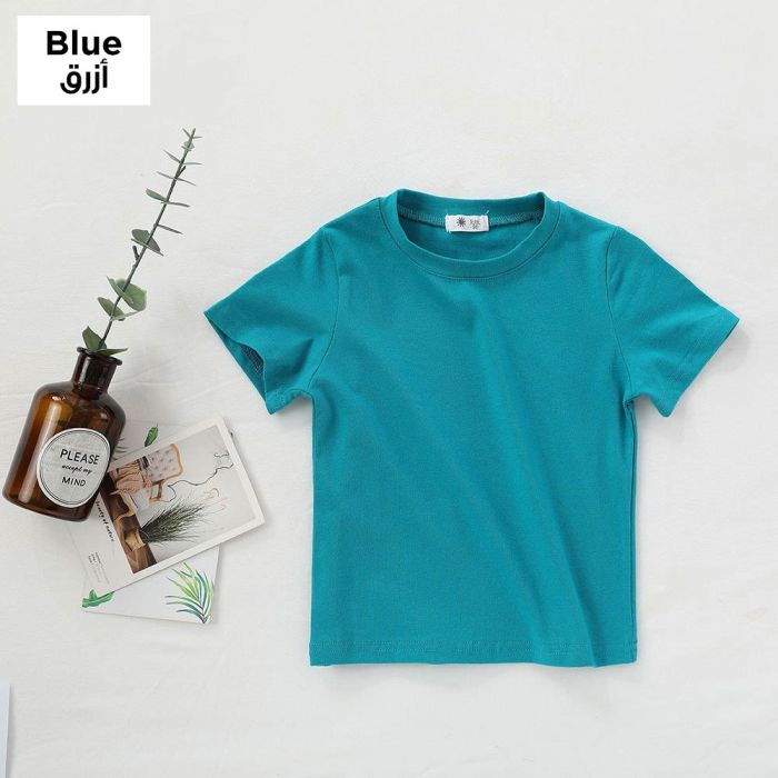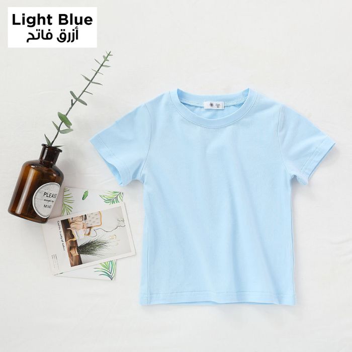 This kids plain summer T-Shirt offers a comfortable and light option for daily wear, its soft cotton fabric ensures perfect comfort in hot weather, the simple design allows free styling with different outfits, suitable for school, play, or outings, adding a touch of modern elegance