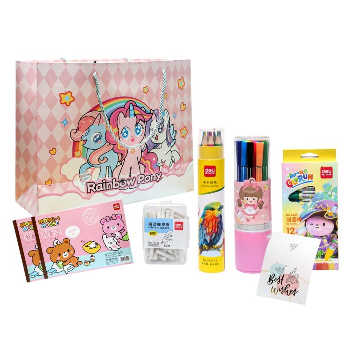 Celebrate your child's kindergarten graduation with this wonderful art set, specially designed to be an educational and fun gift. The set contains an assortment of essential tools that encourage creativity and help develop artistic skills, making it ideal for drawing, painting, and writing. Thanks to its compact and lightweight design, it can easily fit into any school bag or desk drawer.