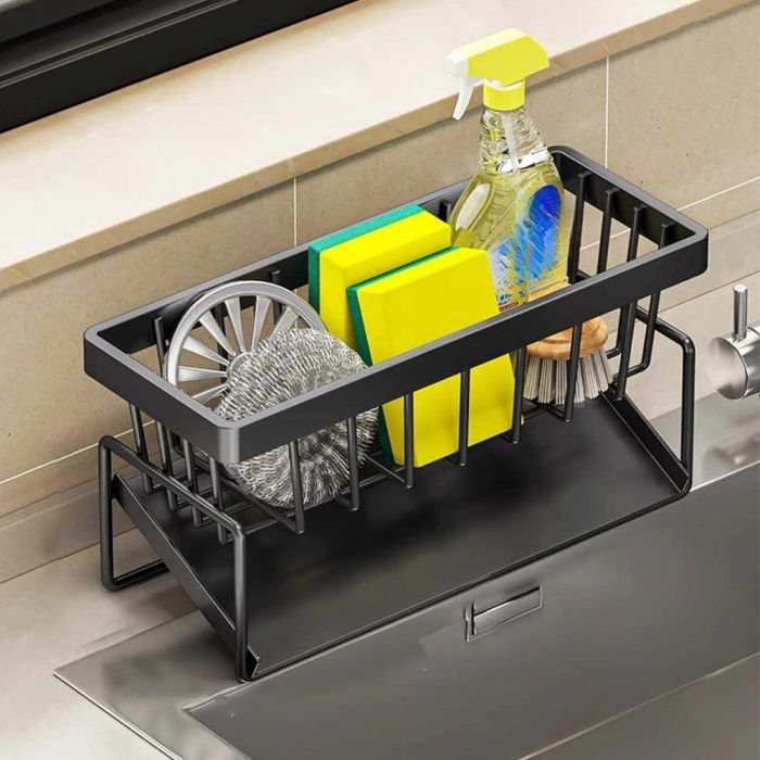 This elegant storage basket for the sink, made from carbon steel, offers a practical solution for organizing cleaning tools in the kitchen. It ensures durability and sturdiness to withstand daily use. Its sleek design adds an aesthetic touch to the kitchen sink and helps maintain a clean and tidy space, making it the perfect choice for anyone seeking quality and practicality in organizing kitchen tools.